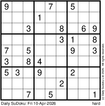 The Daily SuDoku: Fri 10-Apr-2026