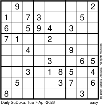 The Daily SuDoku: Tue 7-Apr-2026